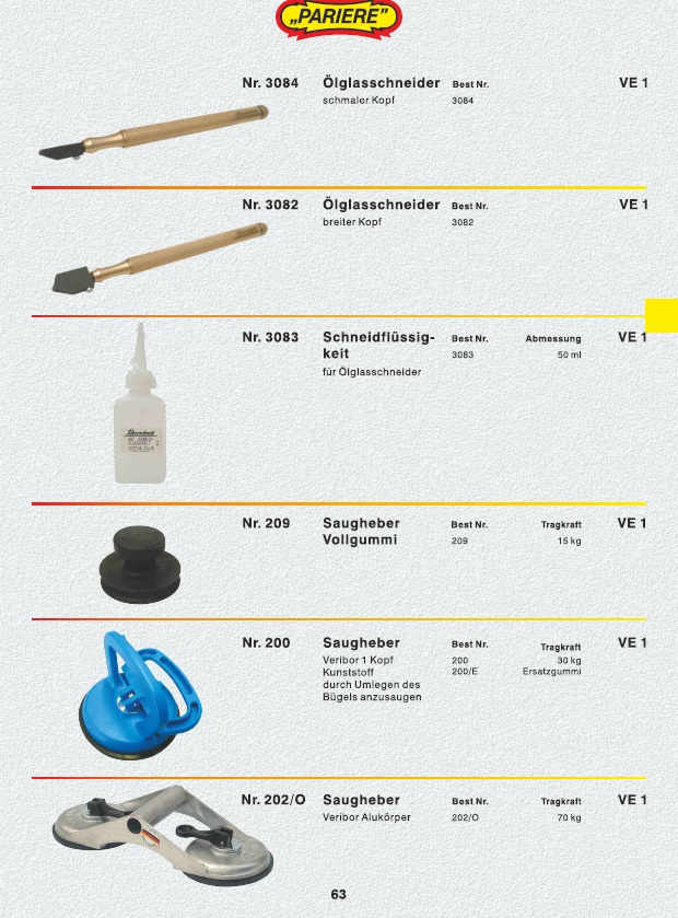 Kittmesser, Wasserschenkel-Kittmesser, Aushaumesser, Klotzheber, Glasschneider, Ersatzrädchen für Glasschneider, Ölglasschneider, Schneidflüssigkeit, Saugheber Vollgummi, Saugheber, Ersatzkopf für Saugheber, Glasrundschneider, Ersatzsauger für Glasrundschneider, Siliconfugenglätter, Silicon-Fugen-Set, Glasbrechzange, Distanzklotz für Gläser aus Holz, Glaserwinkel